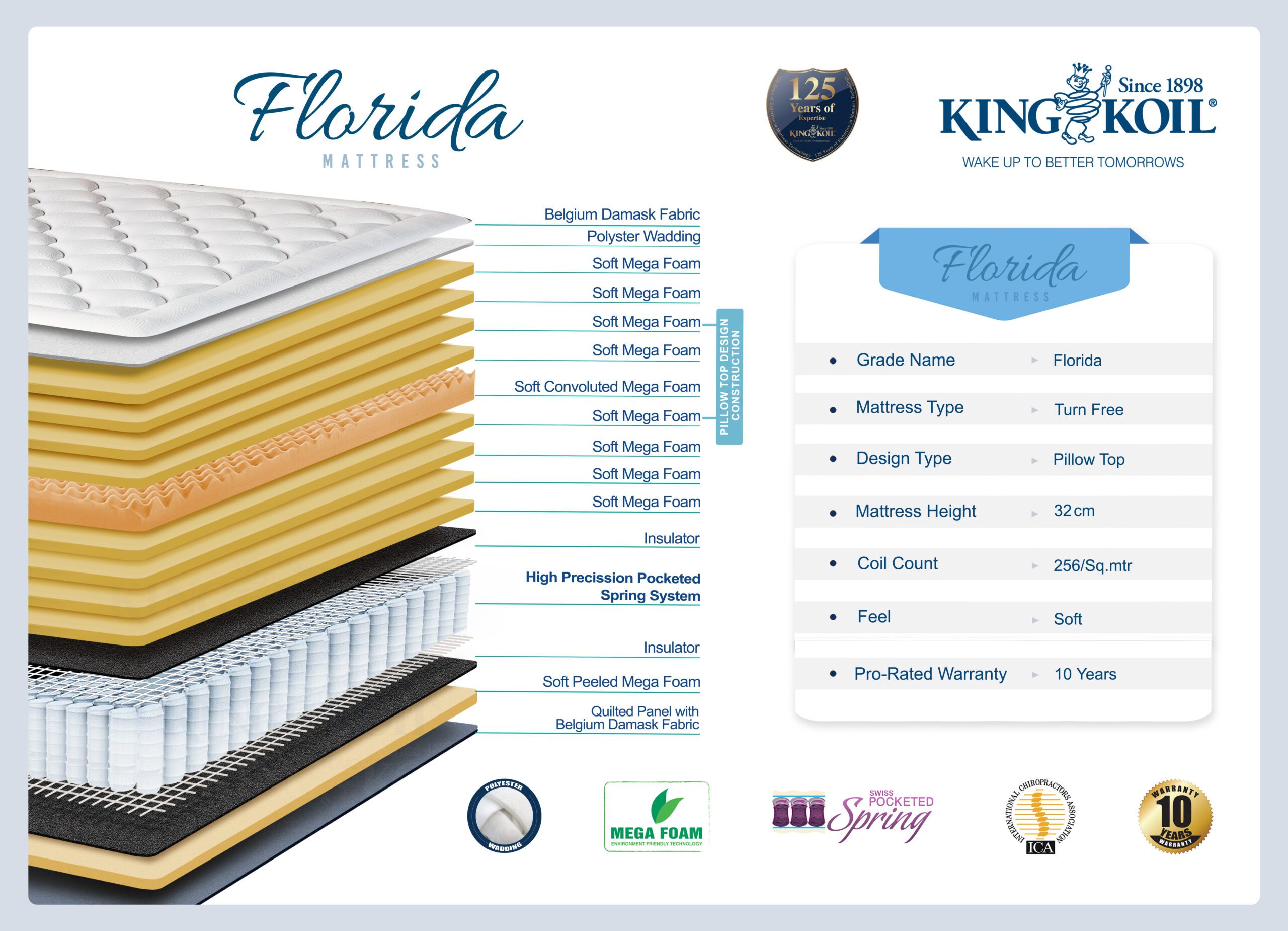 The Built-in pillow top of Florida mattress promotes relaxation by helping you achieve a sense of weightlessness, allowing your muscles to unwind and release tension.