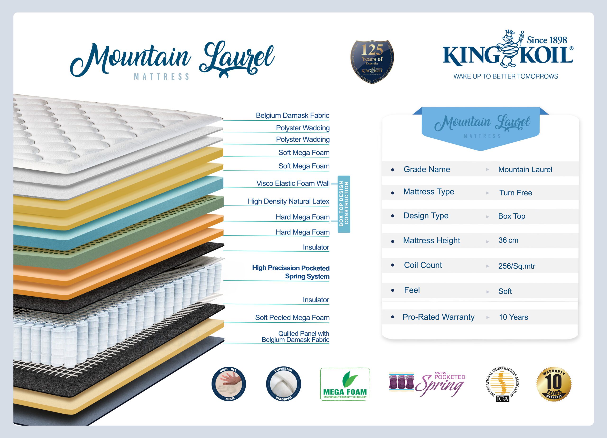 Experience a touch of softness with our luxury soft mattress Mountain Laurel. Experience the Box top with latex and visco-gel feel, a heavenly feel.